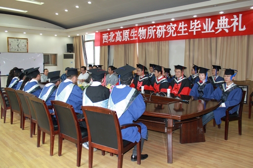2011年6月3日下午,西北高原生物研究所2011届研究生毕业典礼在综合楼二楼会议室隆重举行。副所长陈世龙、农业中心主任陈志国、科技处处长钟海民、财务处处长孙千宁、组织人事处处长王萍、所办公室主任杨勇刚、后勤中心主任张克瑞、导师代表窦全文副研究员以及2011届全体毕业生参加了典礼。毕业典礼由王萍处长主持。