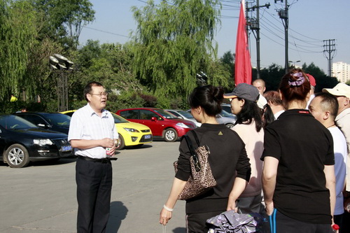 清晨,全所在职职工、离退休职工以及研究生共120多人穿着统一服装,早早的都集中到了出发地的小广场前。同志们有说有笑、互相交流,等待活动开始。