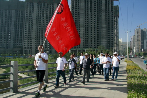 上午九点队伍正式出发。在研究所所旗的引导下,全体参加活动的人员排着整齐的队伍,沿着昆仑西路—万家家居城—会宁巷—海湖新区一直到海湖井字桥圆满结束。整个活动持续了2个多小时,单程路途接近6公里。