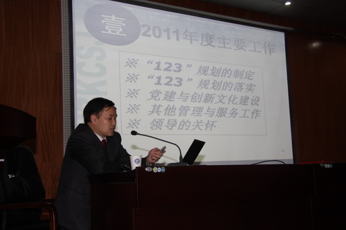 西高所所长张怀刚代表所领导班子回顾了西高所2011年的工作,工作报告分三个部分,2011年工作、存在问题、2012年工作重点。