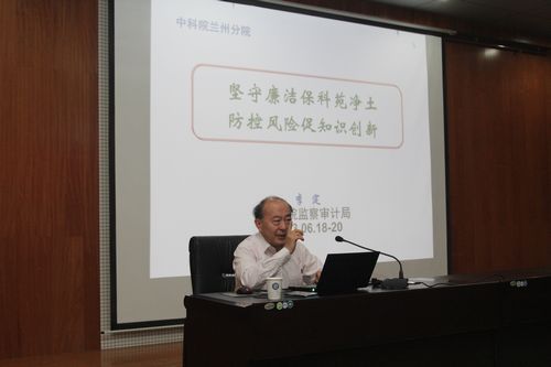 6月20日上午,中国科学院兰州分院党组在青举办加强科研院所反腐倡廉工作专题报告会,中纪委驻院纪检组副组长、中科院监察审计局局长李定应邀到会作报告。会议由兰州分院党组书记兼纪检组长谢铭主持。中国科学院西北高原生物研究所所长张怀刚、党委书记王彦东、副所长陈世龙,中国科学院青海盐湖研究所副所长段东平、党委书记胡彦明、副所长吴志坚、副所长王永晏等出席会议。青海两所中层管理干部、实验室(中心)负责人、课题组长、纪监审干部六十余人参加会议。