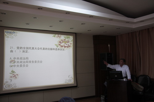杜庆对近期的学习宣传贯彻工作进行了规划安排,以党支部为单位,形式多样的学习十八大报告和新党章,把全体离退休党员的思想统一到十八大精神上来,扎实有效推动“三老四促”实施方案的贯彻和落实。汇报会还结合离退休人员实际情况,以知识竞赛,有奖问答的活跃形式进行辅导学习。