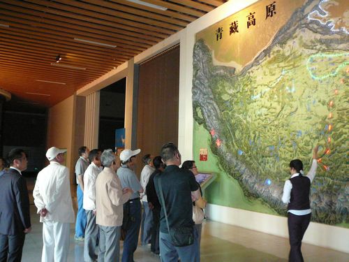 上午10时许,复转军人一行到达世界上唯一全方位介绍青藏高原自然生态环境的青藏高原自然博物馆。博物馆展示分为两层,二楼主要是青藏高原和青海湖形成展厅、矿石石油天然气展厅、冰川冻土展厅和三江源展厅等,三楼主要是动植物标本展厅、昆虫标本展厅和蝴蝶长廊等;博物馆里既有高原冰川、峡谷、丹霞地貌等大型景观,又有高原特有的动植物姿态标本,矿石、盐结晶标本。