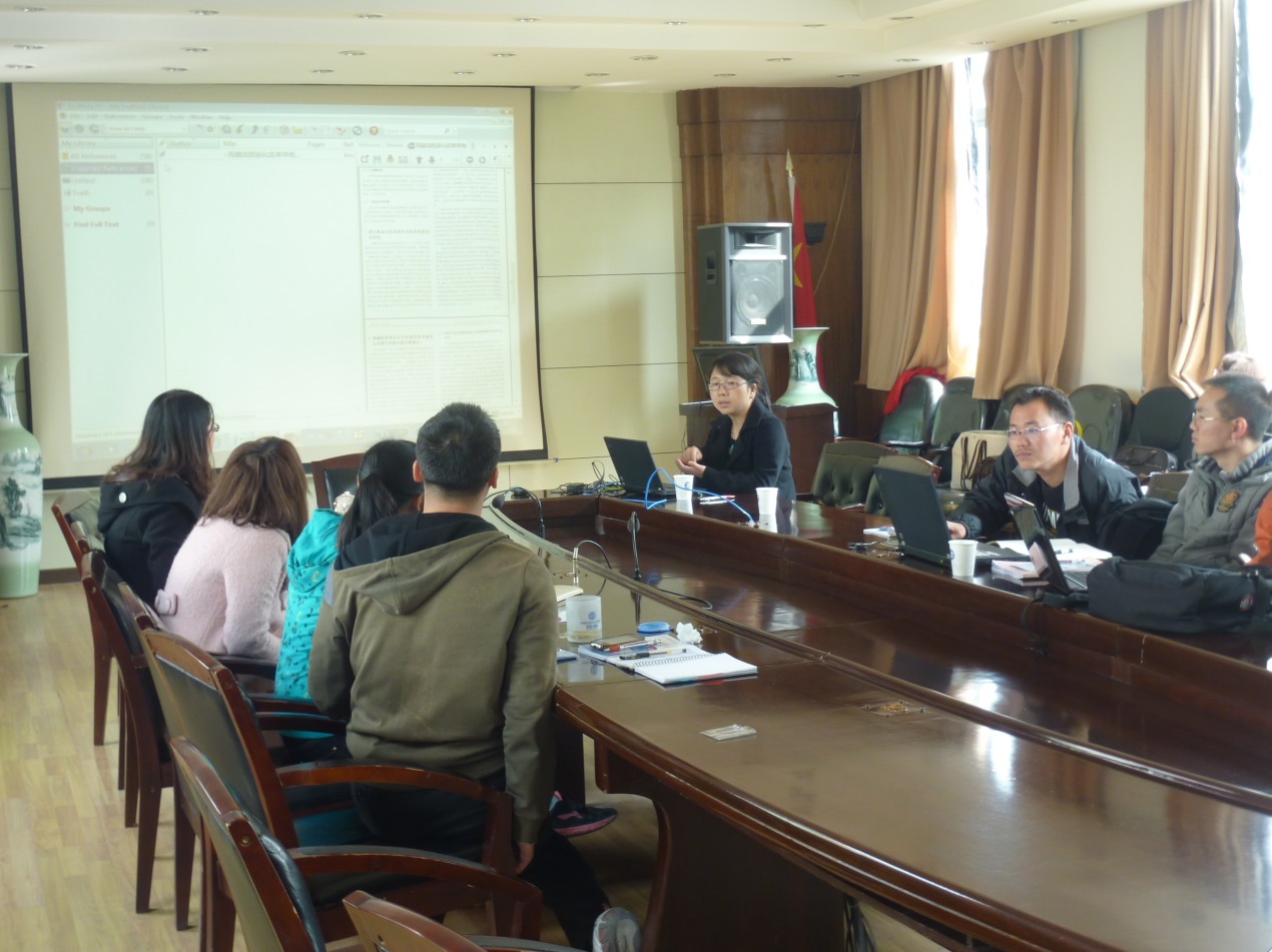 培训主要面向科研人员及研究生,西北高原所图书馆员刘明详细介绍了研究所的网络资源,对所图书馆网站每一个模块的功能做了详细讲解,并就如何利用WEB OF SCIENCE和全文数据库提高论文开题时的获取效率,以及查找专业领域内前沿性、权威性文献的方法与途径结合检索案例进行了生动地示范讲解。国科图兰州分馆学科馆员陈春详细讲解了嵌入科研过程的实验数据与实验方法检索,包括: Wiley在线实验室指南、冷泉港实验手册、JOVE可视化实验等数据库中关于实验方法、实验视频的检索与使用、剑桥科学文摘、INSPEC、KNOVEL数据库中实验数据的检索方法;介绍了ENDNOTE 的常用功能,包括从常用数据库中将文献题录信息导入ENDNOTE、ENDNOTE中的文献管理、如何与WORD联用撰写论文以及X7版本的新增功能。