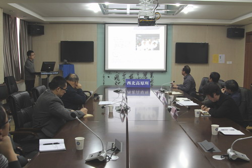 2013年12月5日上午,青海省外国专家局局长杨磊、业务主管杨秉,到西北高原生物研究所进行引智工作调研。所长张怀刚、副所长陈世龙、所长助理兼科技处处长王萍及承担引智项目负责人等相关人员参加了调研会。