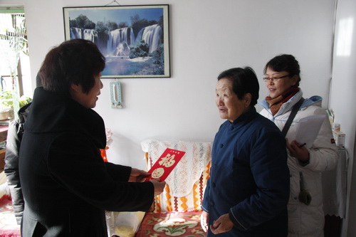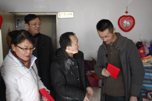 春节即将到来之际,中国科学院西北高原生物研究所新领导班子把走访慰问做为积极践行党的群众路线具体行动,认真贯彻执行中组部、中科院离退休干部局《关于在元旦春节期间开展走访慰问生活困难党员、老党员和老干部活动的通知》精神。1月11日下午,受所长张怀刚委托,副所长陈世龙、副所长王萍、所长助理组织人事处处长钟海民、工会副主席办公室主任杨勇刚等成员走家串户走访慰问了离休干部、贫困户、老党员、孤寡遗孀及职工的残疾子女27户。