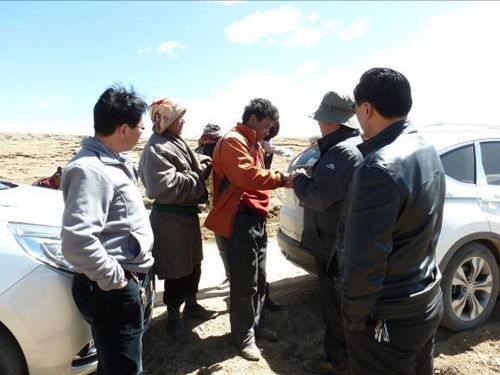 本次活动的主题是“讲政策,促改革、促生产、促和谐”,即“一讲三促”。在出发前一个星期,宣讲组每一位成员即对相关的牧区政策进行了认真系统学习,并明确了各自的任务。为使宣讲活动顺利进行,宣讲组成员提前对对口宣讲村的实际情况进行了了解。宣讲组到达达日县后,首先听取了达日县扶贫局韩隔局长对满掌乡及布东村的情况介绍。布东村位于“三江源”核心区,平均海拔4200m以上,草场退化严重,很多牧民生活长期处于贫困状态。宣讲组深入牧民家中宣讲党的政策,与牧民面对面了解他们在生产生活中遇到的实际困难,并为满掌乡政府和10户贫困家庭牧民送上了慰问金和慰问品。