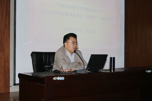 中国科学院西北高原生物研究所党委以纪念中国共产党成立93周年为契机,于6月25日上午,特邀青海省委讲师团团长、青海经济研究院特邀研究员郭云甫来所作“坚持和发展中国特色社会主义实现中华民族伟大复兴‘中国梦’而努力奋斗”的辅导报告。研究所全体党员参加会议,会议由张怀刚所长主持。