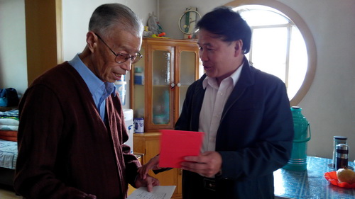 按照中组部关于在中华人民共和国成立65周年之际开展慰问老干部、老党员的通知精神,在国庆节来临之际,西北高原所所长张怀刚带领领导班子成员,走访看望了研究所建国前老干部和老党员,并向他们表示节日的祝福和问候。