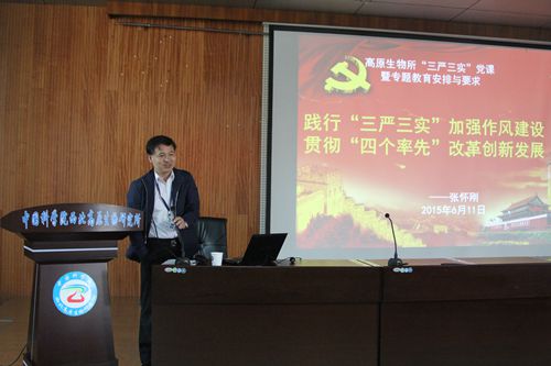 为贯彻落实全面从严治党要求,巩固和拓展党的群众路线教育实践活动成果,持续推进党的思想政治建设和作风建设,6月11日上午,中共中国科学院西北高原生物研究所党委召开“三严三实”教育动员部署及专题党课会议,研究所处级以上领导干部、各部门负责人及全体党员参加了会议,会议由党委副书记、副所长王萍主持。