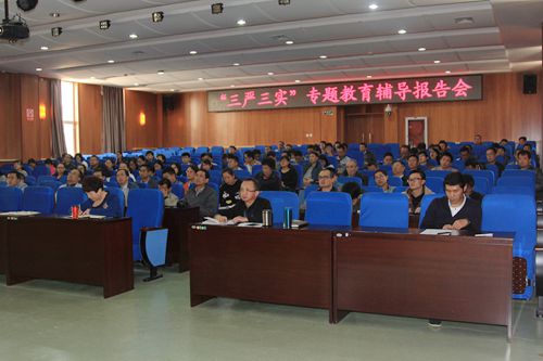 郭云甫作了题为《树立和发扬“三严三实”优良作风 为把青海建设得更加和谐美丽创造新业绩》的报告。报告从充分认识“三严三实”的重大意义、深刻把握“三严三实”的科学内涵和深入推进“三严三实”的措施办法三个方面,运用大量史料并结合青海现状、科研单位实际具体讲述了“三严三实”是党的优良传统的继承和发展,“三严三实”是中国传统文化精髓的继承与创新,“三严三实”是协调推进“四个全面”的重要保证以及“不严不实”的具体表现等。报告讲解细致、脉络清晰、内容丰富具体、使在座党员受益匪浅。