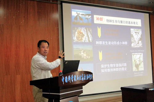 本次论坛共安排11个特邀报告。中国科学院院士、中国科学院水生生物研究所研究员桂建芳,中国科学院动物研究所研究员蒋志刚、王德华、雷富民、杜卫国、詹祥江,西北大学教授李保国、中国科学院昆明动物研究所研究员施鹏、东北林业大学教授张明海、山东大学教授李玉春、西北高原所研究员杨其恩分别作了题为“多倍体银鲫及其复合种的生态分布格局与演化历史”、“未雨绸缪、亡羊补牢:量化中国哺乳动物灭绝风险”、“生理生态学与动物保护:学科地位与发展的思考”、“应对第四纪冰期和气温变化的鸟类谱系地理学过程”、“生态生理学与保护:以爬行动物温度响应为例”、Reference genome, population genetics and population genomics of wild falcons、“环境变化下的秦岭金丝猴社群结构”、“基因组时代下的生物多样性资源挖掘”、“基于粪便分子生物学及3S技术的马鹿家域研究”、“我国小型哺乳动物物种多样性的低估与保护迫切性”和“配子体外生产技术在畜牧生产和野生动物保护中的应用潜力和挑战”的报告。精彩绝伦的报告引起了与会代表的极大兴趣,大家认真倾听、踊跃发言,展开了热烈的交流与讨论,现场气氛异常活跃。