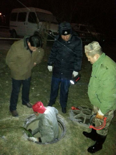 决定做出后,刘德春仔细检查冻裂的管道,发现多处管道接口崩裂,维修难度非常大,恰逢春节假期,又是夜间,维修所需配件买都无处买,自己抢修存在很大困难。在不得已的情况下拨通了西宁市自来水公司的抢修电话,抢修人员到达现场后,首先确定此次管道破裂不属他们公司维修范围,因为破裂地点在园区内。在我们的恳请下,抢修人员还是对冻裂管道进行了勘查并提出了两套维修方案,一是彻底维修,首先要将地沟的水排净,更换冻裂的管道,根据工程量最少也要3天时间。二是临时供水,方法是切断冻裂管道并用钢板将管口封堵,再用钢管临时连接到城市管网,但要等第二天才能施工,至少需要一天时间才能恢复供水。正逢春节,停一天水将对住户造成诸多不便。在这种情况下,崔瑞贤与刘德春师傅再次进行了沟通,为不影响住户欢度春节,决定靠自己的力量连夜抢修,力争在最短的时间内恢复供水。