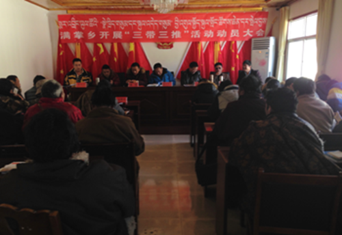 尕藏当智传达了“三带三推”活动动员大会会议精神,谢热宣读了《2016年全省万名干部下乡开展“三带三推”活动实施方案》,贺六十三作了重要讲话并对“三带三推”活动提出几点意见。