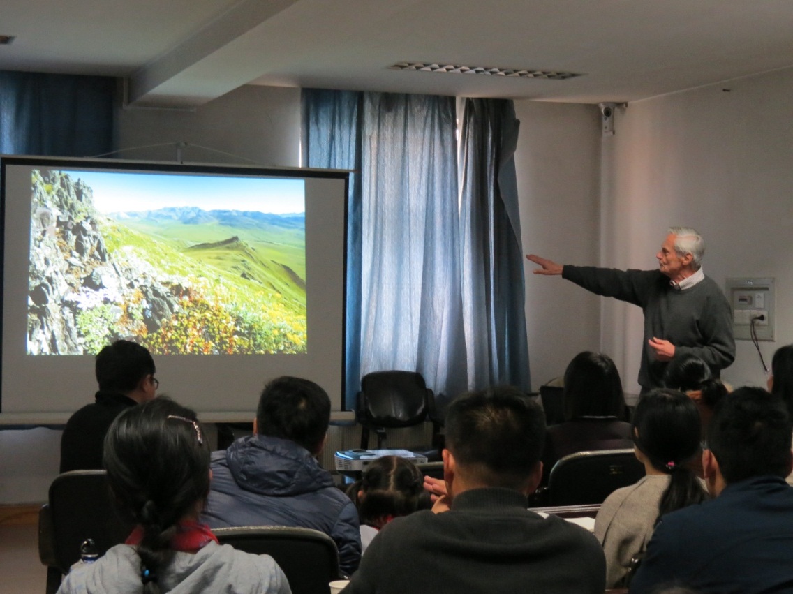夏勒在报告开始前与参加论坛的师生进行了面对面的交流,倾听师生们对于野生动物保护方面的想法与建议。报告中,夏勒展示了他在野外工作中拍摄的照片并讲述了每张照片背后的故事,不同野生动物和自然景色的照片引起了师生们的极大兴趣,夏勒认真、幽默的报告获得了同学们的热烈掌声。