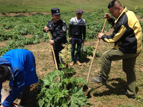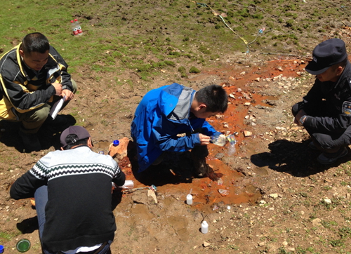 7月15日,驻村“第一书记”贾先卫、扶贫(驻村)工作队队员肖洒、高原生态学研究中心项目副研究员李文靖在满掌乡干部的积极配合下,在布东村进行两个科技扶贫项目“大黄种植技术及病虫害治”和“矿泉水开发前期水质技术检测”大黄和矿泉水检测样品的采集。按照样品检测要求,在药泉水源地共采集水样10份,在大黄种植基地随机共采集大黄样品10株(分别采集植株的根、茎、叶、花等),及时送回研究所分析测试中心进行样品检测。