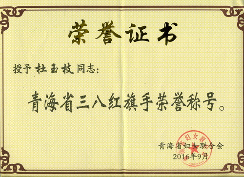 杜玉枝获得“青海省三八红旗手”光荣称号