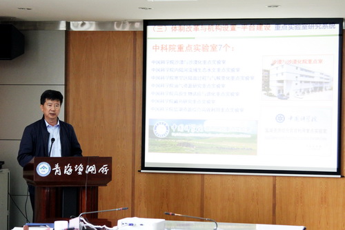 在座谈会上,西北高原所党委书记、所长张怀刚重点汇报了西北高原所自建所以来扎根西北、立足高原,在高原生态保护、特色生物资源开发利用、高原生态农业研究等方面取得的科技成果,研究所党建工作,下一步工作面临的机遇与挑战等。青海盐湖所副所长吴志坚,党委书记王萍分别汇报了青海盐湖所科研与党建工作情况。西北生态资源环境研究院(筹)(以下简称西北研究院)院长王涛汇报了西北院成立一年多来的工作进展及成效,重点汇报了特色研究所改革问题导向、西北研究院主要改革举措、特色研究所群的工作进展以及围绕“一带一路”工作建议。