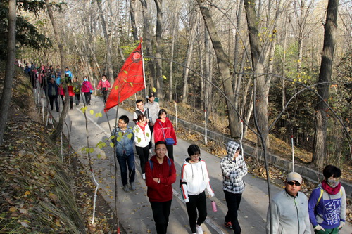 十月的西山空气清新,景色宜人,缤纷的树叶,和煦的阳光,为登高活动增色不少。一路上,大家沿着盘山路大步向前,或结伴而行,或三五成群;或谈笑风生,或随拍美景。党的十九大也成为大家最关注的话题,学报告、谈感想、说发展,大家感怀昨日发展,感叹时代进步,憧憬美好生活。