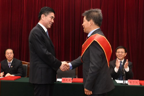 4月3日上午,中共青海省委、青海省人民政府在西宁隆重召开青海省科学技术奖励大会,对为青海省科学技术进步和促进经济社会发展作出突出贡献的科学技术人员和组织给予奖励。青海省委书记、省长王建军等领导出席奖励大会。中国科学院西北高原生物研究所研究员索有瑞获2017年青海省科学技术重大贡献奖。王建军为索有瑞颁发青海省科学技术重大贡献奖奖励证书。