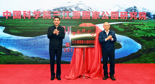 王建军和张亚平共同为“中国科学院三江源国家公园研究院”揭牌。