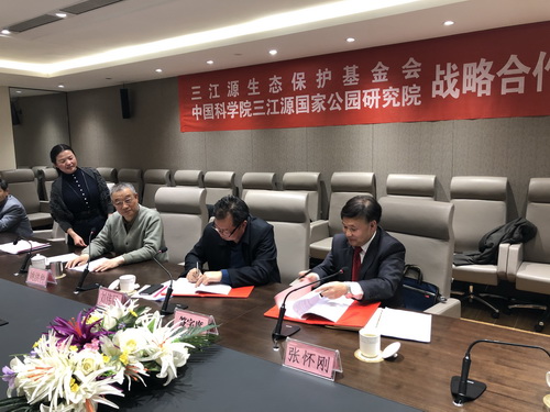 11月16日,中国科学院三江源国家公园研究院院长张怀刚、副院长陈世龙、办公室主任杨勇刚、生态中心主任徐世晓、科技处副处长吉文鹤一行到三江源生态保护基金会交流并签署战略合作协议。双方将携手呵护“中华水塔”。
