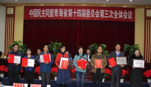 根据民盟章程,会议以举手表决的方式同意免去贺贵邦同志民盟青海省第十四届委员会委员职务,李青同志民盟青海省第十四届委员会副主委、常委职务;补选李臣玲、李莉娟、韩青玉同志为民盟青海省第十四届委员会委员,张文郡、李玉林、韩青玉同志为民盟青海省第十四届委员会常务委员会委员,张兴民、李军乔同志为民盟青海省第十四届委员会副主委。会议向2018年度受民盟中央表彰的先进集体与个人颁发了奖牌(证书),中科院支部荣获2018年民盟中央思想宣传工作先进集体。