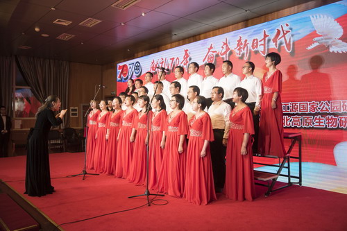 大合唱:《我和我的祖国》《中国,中国,鲜红的太阳永不落》(高原生态农业研究中心、所级公共技术服务中心、信息与学报编辑室、青藏高原生物标本馆)