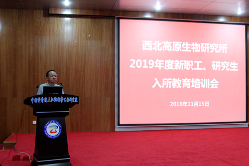 为使新职工、新回所研究生尽快熟悉、掌握研究所科研及管理情况,顺利地开展工作,同时提供一个新职工、研究生跨部门相互认识和了解的机会,2019年度中国科学院西北高原生物研究所新聘职工及研究生入所教育培训班于11月15日举行。所长陈世龙,党委副书记、纪委书记杨勇刚,组织人事处处长钟海民,科技处副处长吉文鹤及管理部门相关人员出席了此次培训,培训会由钟海民主持。2019年新招聘职工、2018级硕士研究生和2019级硕士生、博士生参加了此次培训。