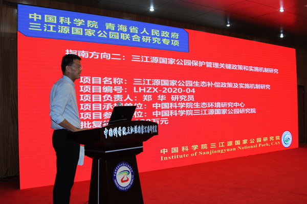 启动会上,研究院副院长魏立新宣读了“中国科学院青海省人民政府三江源国家公园联合研究专项”2020年度项目立项文件。特邀国务院发展研究中心研究员,管理世界杂志社副总编辑苏杨作了题为 “国家公园如何统筹‘最严格的保护’和‘绿水青山就是金山银山’”的报告。国家林业和草原局昆明勘察设计院(国家林业和草原局国家公园规划研究中心)教授级高级工程师孙鸿雁以“我国国家公园建设进展与问题探讨”为题作了报告。
