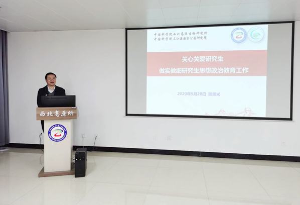 为进一步提高研究生的思想政治素养与综合素质,培养其爱国主义和勇于开拓创新的精神,引导其树立正确的世界观、人生观和价值观,9月28日上午,西北高原所党委书记、副所长张景光为全体研究生做题为“关心关爱研究生,做实做细研究生思想政治教育工作”主题思政报告。报告会由副所长杨其恩主持。