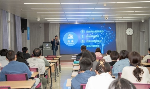 所办公室高级工程师姜文波对网络安全及信息安全进行了专项培训。他围绕网络安全的重要性、西北高原所网络建设、重要注意事项等方面进行了培训交流,从常见的网络安全事件及产生原因、黑客攻击趋势分析和日常安全防范等方面讲了网络安全防范策略。