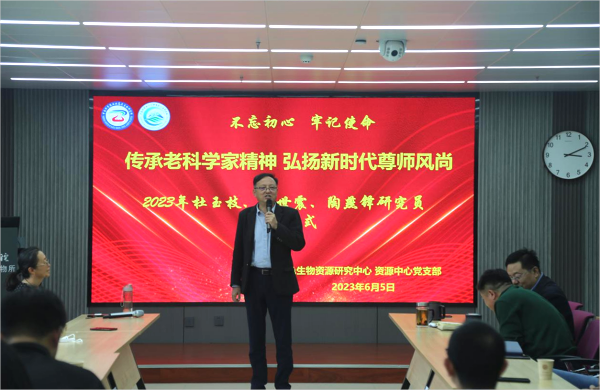 莫道桑榆晚,为霞尚满天。6月5日下午,中国科学院西北高原生物研究所人事教育处联合特色生物资源研究中心(以下简称资源中心)和资源中心党支部,举办以“传承老科学家精神 弘扬新时代尊师风尚”为主题的教育活动暨职工荣休仪式。所长陈世龙,党委书记、副所长张景光,副所长魏立新、杨其恩,管理部门负责人,退休研究员杜玉枝、马世震和陶燕铎及资源中心在职职工和研究生50余人参加会议。会议由人事教育处副处长杨红霞和资源中心主任周国英主持。