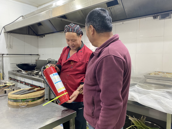 检查组对公寓楼、实验室、厨房、餐厅和锅炉房等场所内的用火、用电和用水等设施的安全隐患进行了检查。检查过程中发现,公寓楼内灭火器等消防设施状态良好,但数量较少;净水器滤芯使用时间较久,需要近一步更换;针对发现的安全隐患,检查组近期将开展整改工作。海北站夏季接待科研人员较多,为了提升安全意识和应对险情能力,王林对厨房工作人员和学生进行了安全用火、用电和灭火器使用方法的培训,保障了公共安全。