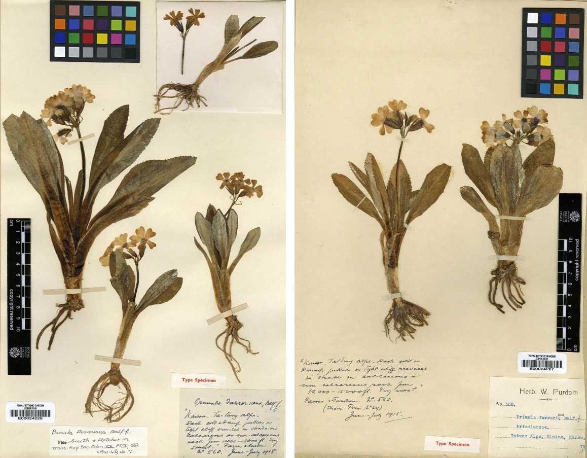 大通报春模式标本(馆藏于爱丁堡皇家植物园)