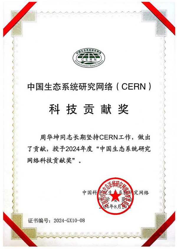 周华坤获2024年度中国生态系统研究网络科技贡献奖