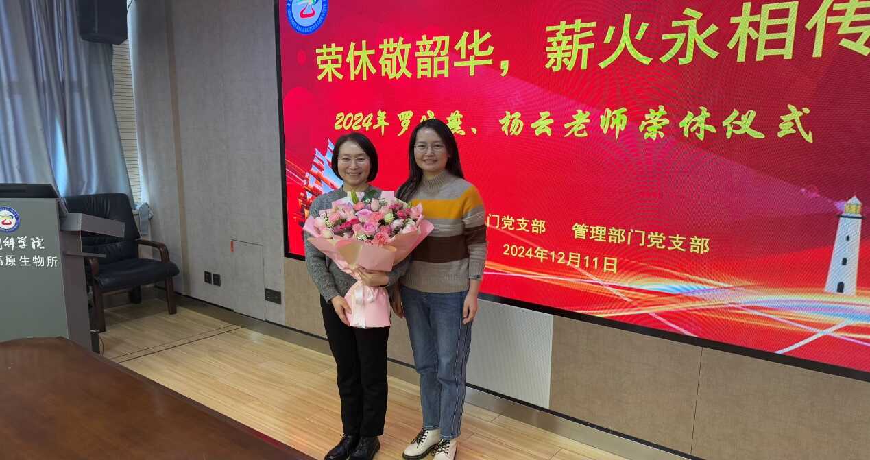 荣休敬韶华,薪火永相传。12月11日下午,中国科学院支撑部门党支部、管理部门党支部联合为信息与学报编辑部主任罗晓燕、纪委办公室职员杨云举办荣休仪式。所长、党委书记陈世龙,科技处处长吉文鹤,党委办公室副主任翟睿英,人事教育处副处长杨红霞,财务处副处长赵海燕,所级公共技术中心副主任李玉林,荣休职工罗晓燕以及支撑部门、管理部门在职职工20余人参加会议。会议由所级公共技术中心副主任李玉林主持。
