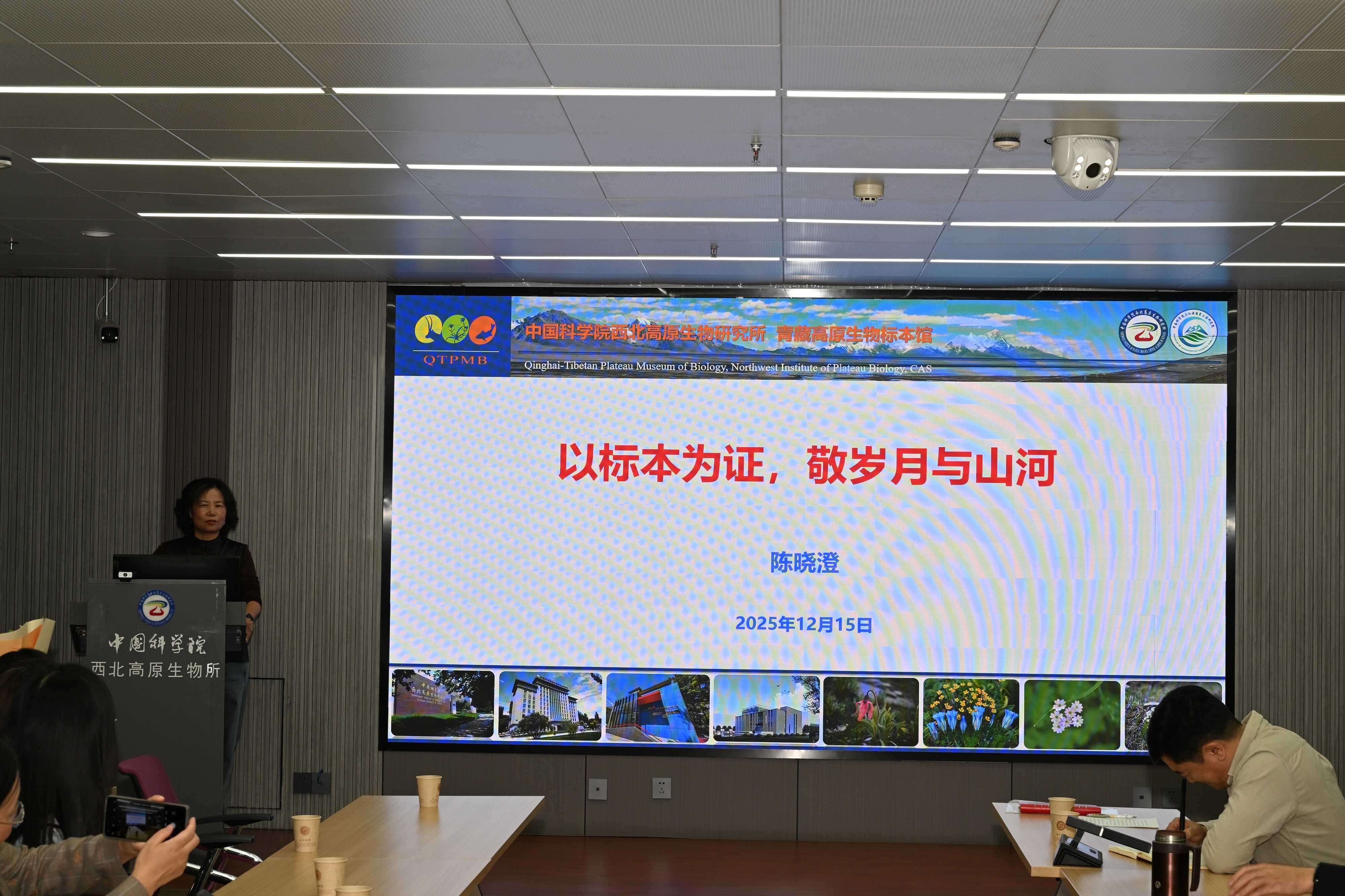 陈晓澄老师以《以标本为证,敬岁月与山河》为题,深情回顾了自1984年入职以来,与青藏高原生物标本馆共同走过的四十年岁月。在她的讲述中,标本馆不仅是进行生物分类和生物多样性研究的基础平台,也是开展系统演化研究的重要依托,同时还是整个生命科学领域的实物资料宝库,更是几代科研人员默默奉献、砥砺奋进的见证。陈老师详细介绍了自己在标本野外采集、制作、整理、鉴定、数字化及科普等方面开展的工作。在感言中,陈老师将一切成绩归功于青藏高原这片土地的滋养、同事们的并肩作战、家人的无私支持,以及年轻一代的接续奋斗。她虽然即将退休,但心仍与标本馆、与高原紧紧相连,并寄语后来者继续守护高原的“生命密码”,让更多人通过标本了解并热爱这片神奇的土地。