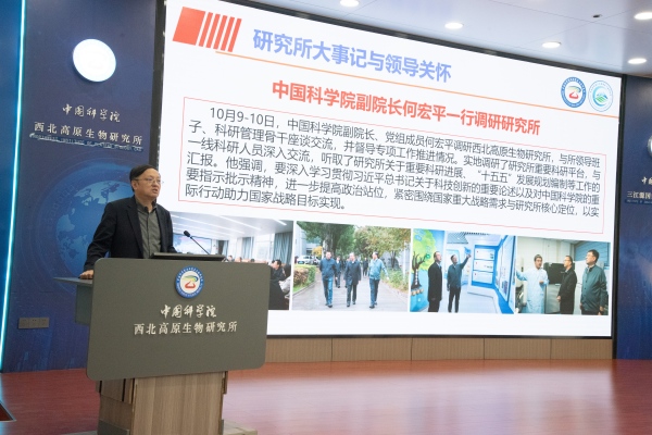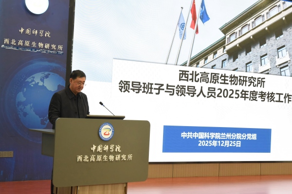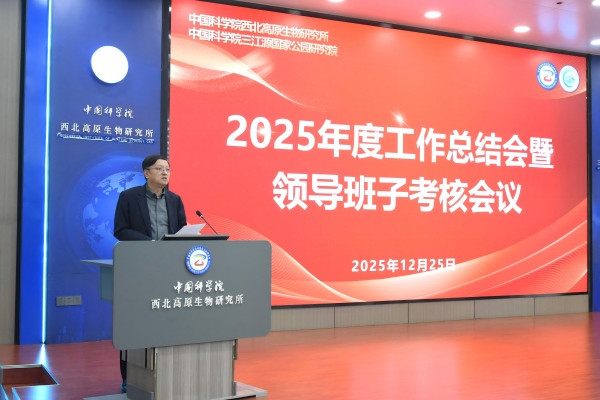 12月25日,中国科学院西北高原生物研究所召开2025年度工作总结大会暨领导班子考核会议。中国科学院兰州分院副院长、分党组成员赵培庆,人事人才处相关人员,西北高原所所长、党委书记陈世龙,副所长魏立新、杨其恩,纪委书记马忠汉以及全所在职职工、老专家老干部代表和研究生240余人参加了会议。会议由陈世龙主持。