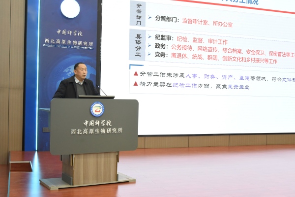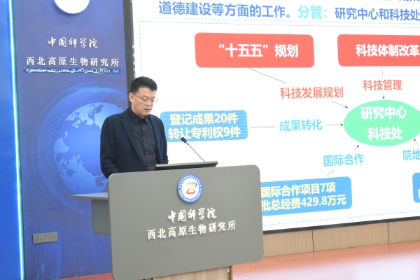 陈世龙所长代表所领导班子作了题为“扎根青藏高原 聚焦高原生物 保障生态安全”的2025年度工作总结和述职报告。报告详细阐述了“十四五”完成情况,就深入学习贯彻党的二十届四中全会精神,贯彻落实2025年度院工作会议精神,聚焦院党委重大决策部署,研究所重大科研项目进展、高水平科研成果产出等内容进行汇报,并对2026年重点工作进行部署。
