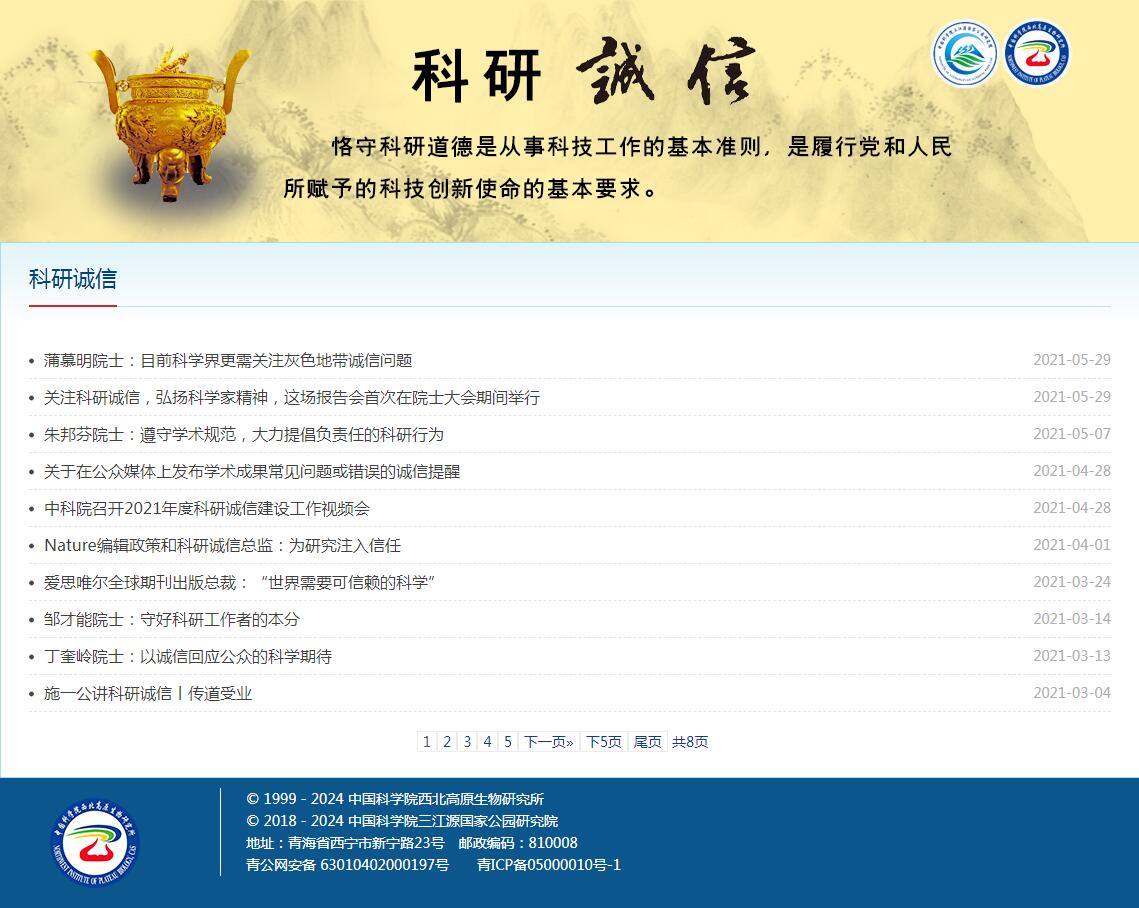 科研诚信是科研伦理的一部分,涉及科研过程、交流和报导的行为准则。科学界对不符合科研诚信的行为有明确的定义,包括伪造、篡改、剽窃等。为了更好地宣传科研诚信,中国科学院西北高原所生物研究所近日,开通了“科研诚信”专题,并将近年来公开发布的相关文章集中发布在本专题。