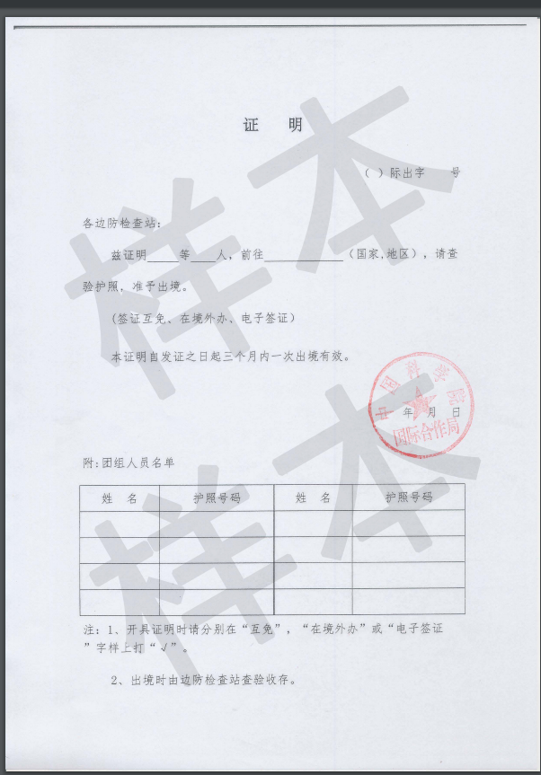 新版的“因公出国境证明”(样本)和相关申报流程及要求