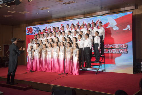 大合唱:《我和我的祖国》《中国,中国,鲜红的太阳永不落》(高原生态农业研究中心、所级公共技术服务中心、信息与学报编辑室、青藏高原生物标本馆)