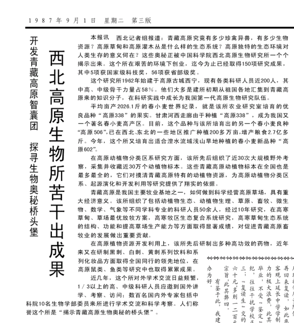 ——记西北高原生物研究所几位科技人员