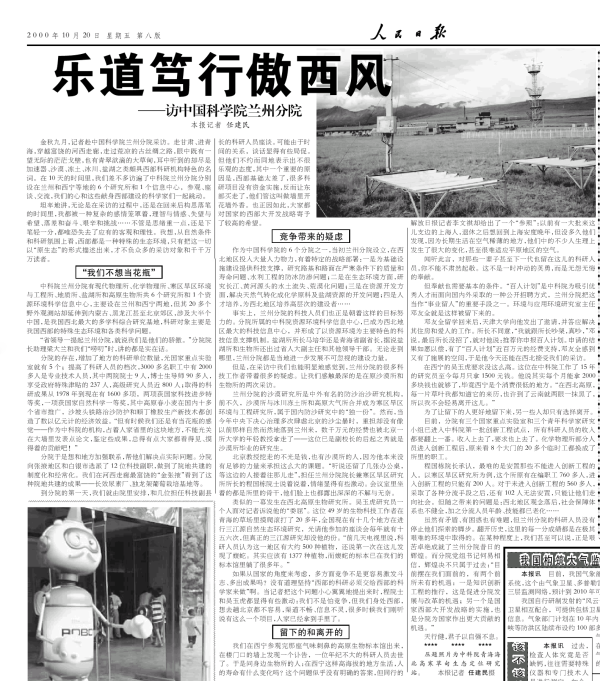 但是,在采访中我们也能明显地感觉到,兰州分院的很多科技工作者带着很多的疑虑。让我们感触最深的是在原沙漠所和生物所的两次采访。