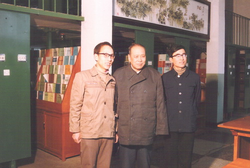 1984年夏武平和首届培养的硕士研究生蒋志刚(左一)和宗浩(右一)合影