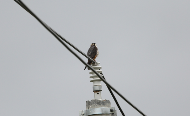 “快看,电线杆上有只鸟,好像之前没见过。”“看起来像隼,但又不是我们熟知的红隼和猎隼。”“嘴灰色,眼周和鼻部的蜡膜橙红色,脚橙红。”科考队员你一言、我一语,根据特征,我们很快便想到了红脚隼(阿穆尔隼)。红脚隼的出现打响了我们小队科考的第一枪,也为我们此次科考开了个好头,让我们对前路更加充满了期待。