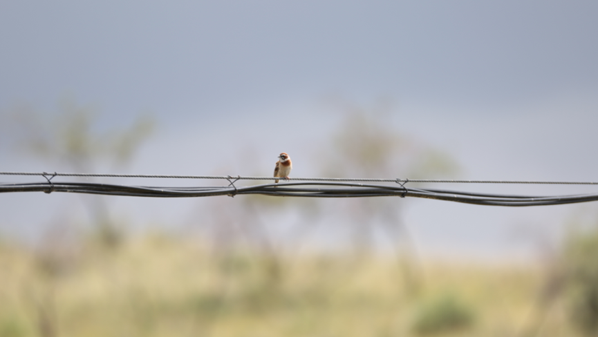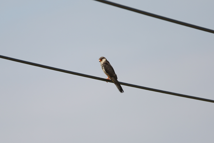 立于电线上威风凛凛的红脚隼,又名阿穆尔隼