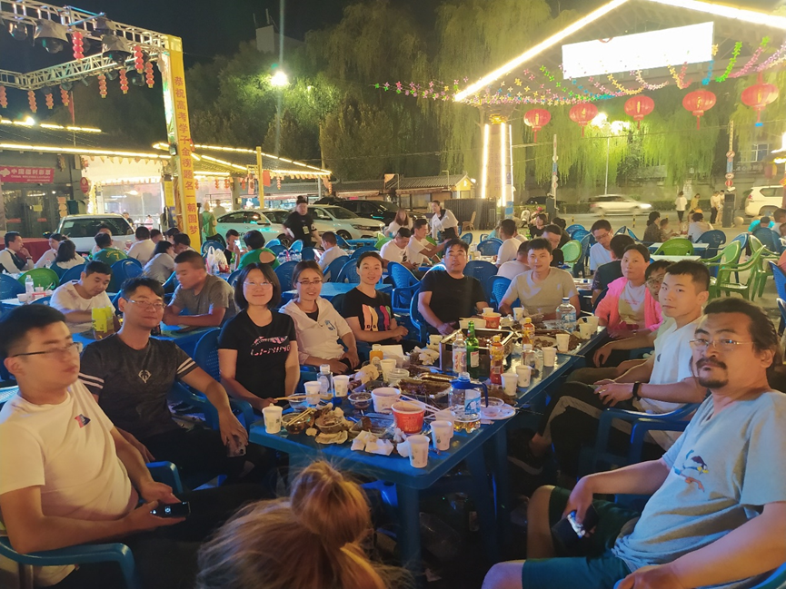 在调查完几个区域之后,我们也迎来了工作之余的放松。老师带我们去吃夜市,去师姐家里做客。小队成员们个个都很开心。在夜市里,大家迎着皎洁的月光一起喝着饮料,吃着烧烤,聊着调查过程中发生的趣事,交流着野外调查的心得体会。我不禁想起曹操的名句“对酒当歌,人生几何”,科考是艰苦的,但我们却个个乐在其中。在高师姐家中做客时,师姐和她的家人们都十分热情,当天为我们宰杀了一只羊,并准备其他丰盛的饭菜来招待我们。当晚我们走回住所时,迎着漫天的繁星,空旷的马路上充满着大家的欢声笑语,大家还一起在满天的星星中寻找着北极星,又拿出手机来寻找星座。多么美好的夜晚,多么甜蜜的生活,多么温馨的团队,老师和师兄们都情不自禁地作起了诗来。