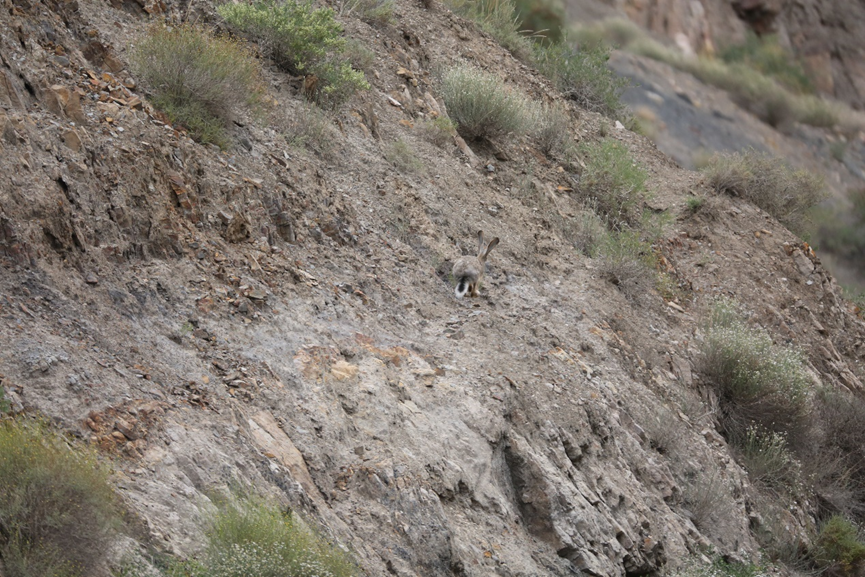 在峭壁上健步如飞的蒙古兔,小心翼翼的我们,还是惊动了它